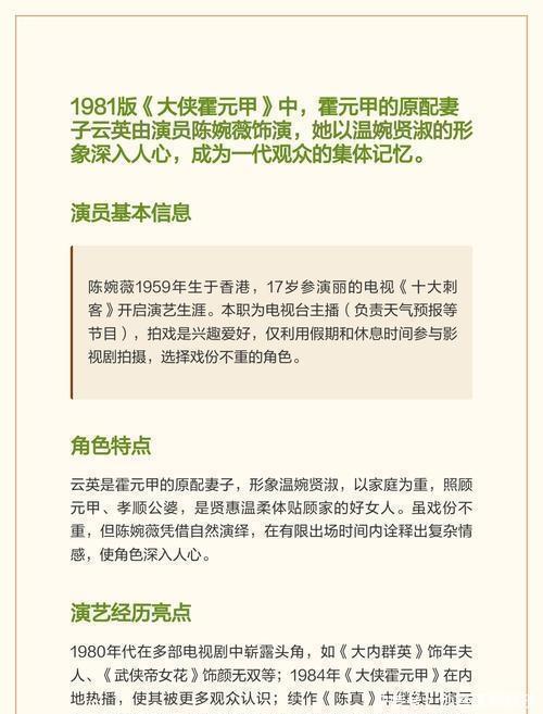 旁边工位的人请假半个月,回来就说自己拿了奥斯卡奖。现在很多人拼命争名气抢关注,这种事简直不在一个层面。时间是一九八一年。那时候香港两家电视台竞争很激烈。一部叫霍元甲的电视剧特别受欢迎。米雪演的那个角色是故事的中心人物,性格很鲜明。另一个演员演了叫云英的角色。这个人物代表以前的社会风气,遵守老规矩,一直喜欢霍元甲。这种角色演得不好会让人讨厌,演得好就会让很多人记住。