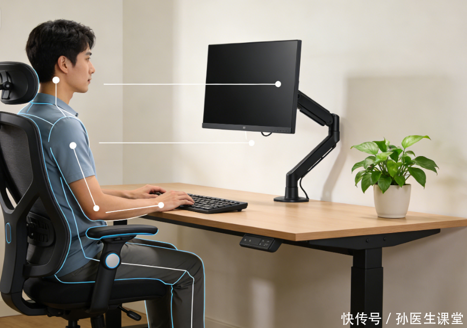 在工作和刷手机这件事上,最关键的不是你一天低头多久,而是你连续低头多久。可以把颈椎当成需要“定时散热”的设备:连续工作二三十分钟,就让脖子回正几十秒,转动肩膀、做几次深呼吸,站起来走两步。屏幕尽量抬高到视线附近,让眼睛向下看,而不是让脖子向下折。久坐时把后背贴住椅背,别让肩膀一直耸着,耸肩就像把肩带勒紧,勒久了会麻会酸。
