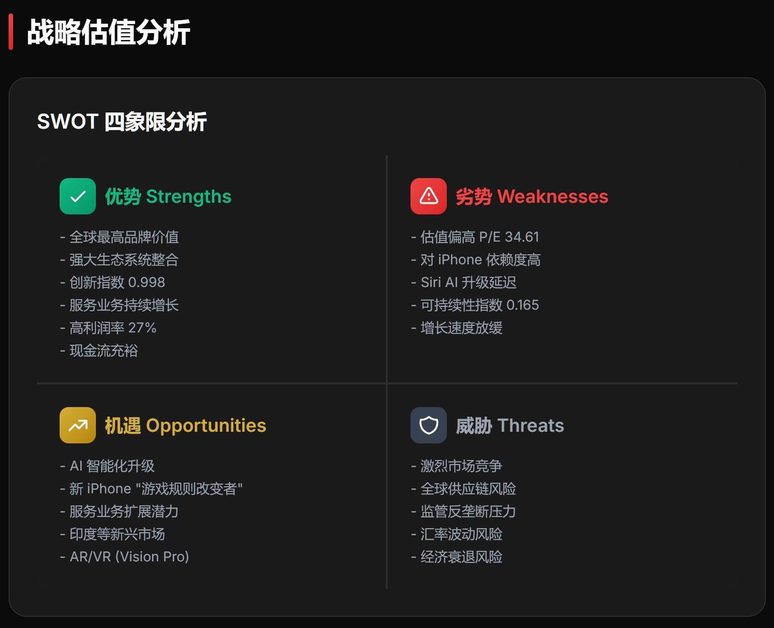 一、网页设计是强项,一句话做“黄金矿工”小游戏首先,在考察编程能力的网页制作环节,我们让模型创建一个网页仪表盘,对苹果公司进行可视化分析,内容必须涵盖财务健康状况、技术面/市场情绪、竞争对手比较以及战略估值(SWOT/内在价值),以提供明确的投资建议。