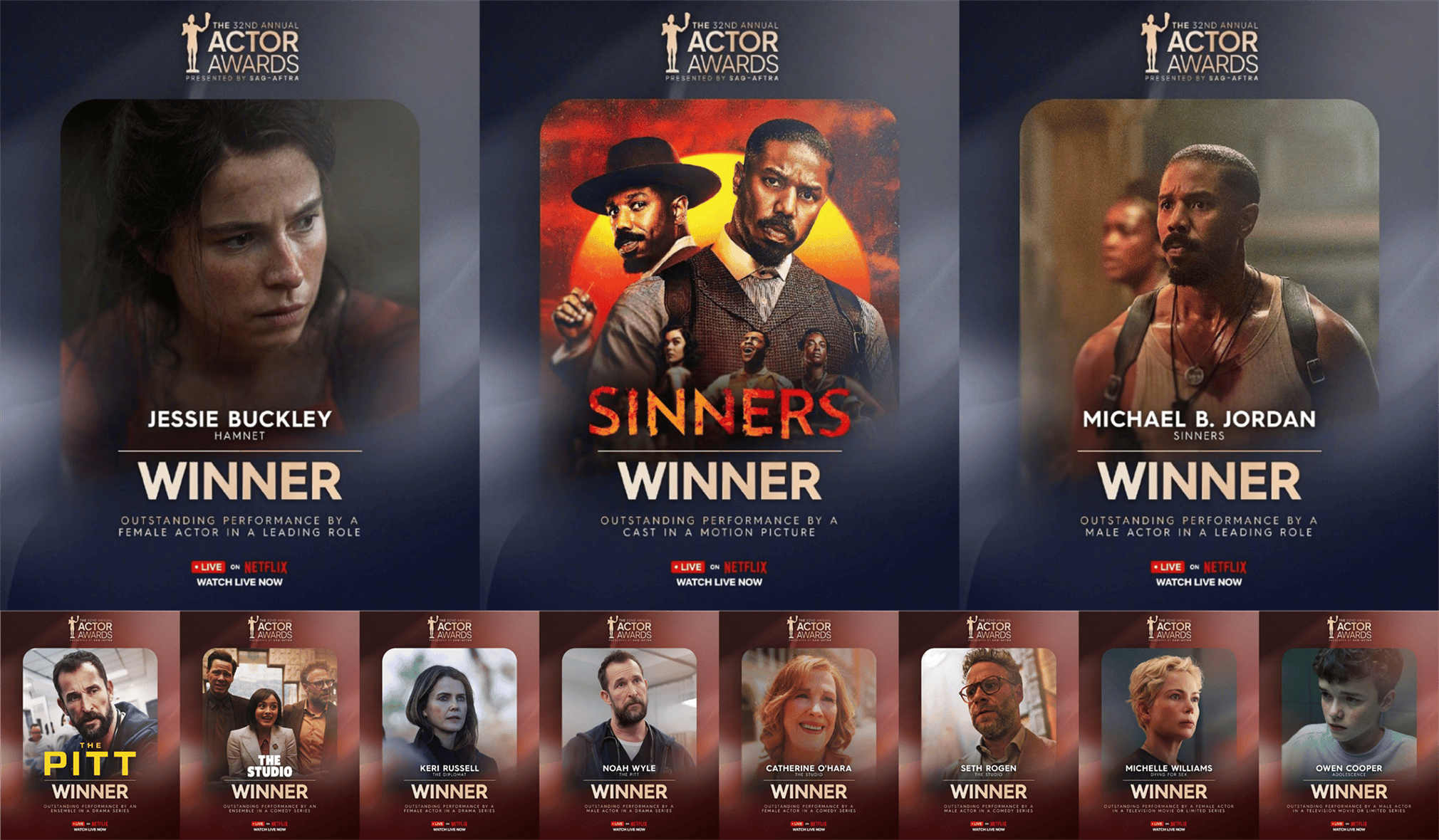 当地时间3月2日,第32届美国演员奖正式揭晓获奖名单,这场备受全球娱乐圈关注的颁奖盛典,汇聚了好莱坞众多实力派艺人,最终,迈克尔·B·乔丹凭借《罪人》获封电影最佳男主角(影帝),杰西·巴克利则凭《哈姆奈特》摘得电影最佳女主角(影后),电影《罪人》同时荣获最佳群戏奖,成为本次颁奖盛典的最大赢家。